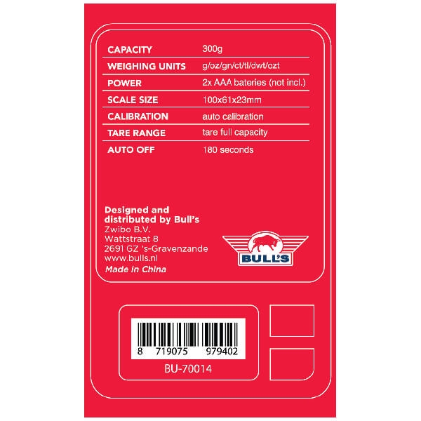 Med Bull’s digitalvægt kan du veje både dartpile og tilbehør med høj præcision, så dit setup altid er perfekt afbalanceret og klar til konkurrence.