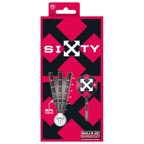 Den 60 mm lange dartpil er fremstillet af 90% tungsten og har en gennemgående dobbelt ringgripstruktur med sort coating, som giver et ensartet og sikkert greb over hele længden.