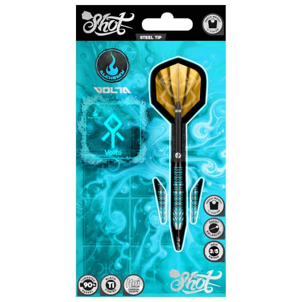 Alchemy Volta 90% Steel Dart forener et iøjnefaldende design med præcisionsfremstillet kvalitet, så du får et dart-sæt med stabil kontrol og god balance.
