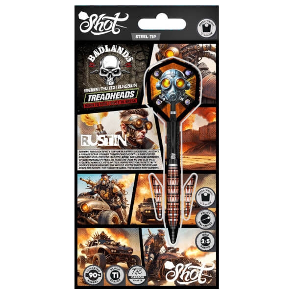 Med sin torpedoform og det aggressive Throttlefang Grip leverer Shot Badlands Rustin en dartpil med maksimalt greb, jævnt release og konsekvent præcision i hvert kast.