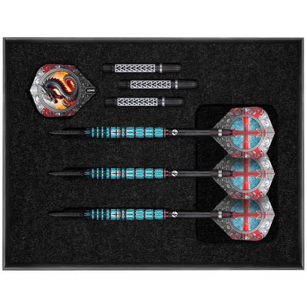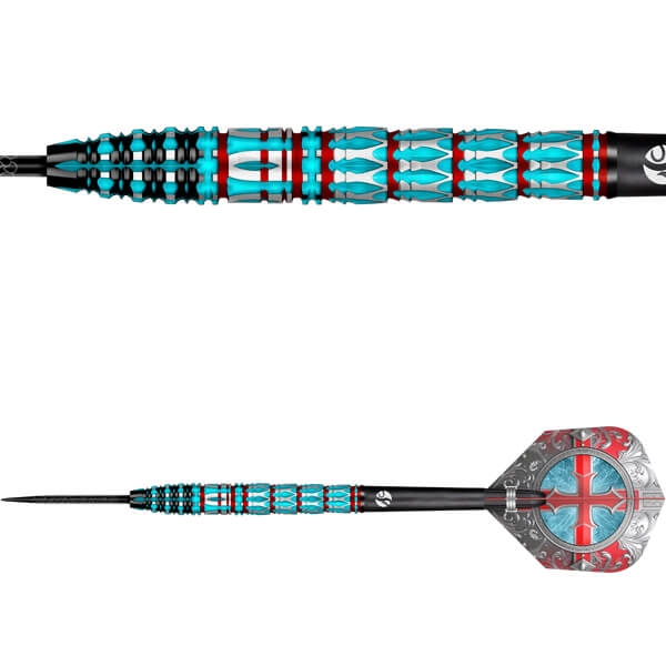 Inspireret af legenden om dragedræberen St. George kombinerer dartpilen et markant, næsten middelalderligt udtryk med moderne præcisionshåndværk.