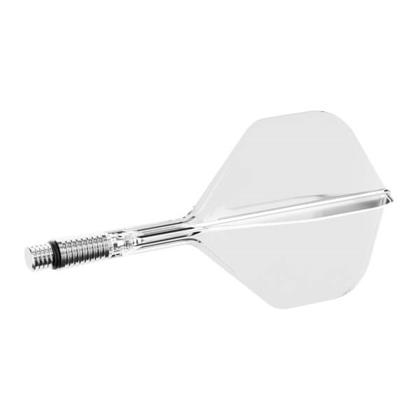 Basen på skaftet er fremstillet i let aluminium med radiale riller for bedre greb ved montering og afmontering. En gummiring og 2BA-gevind sikrer en fast og stabil forbindelse til dartpilen, samtidig med at systemet kan bevæge sig kontrolleret ved behov.