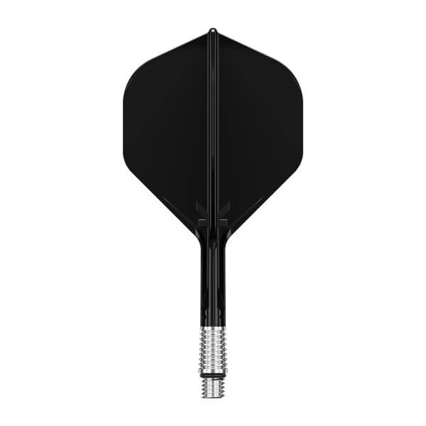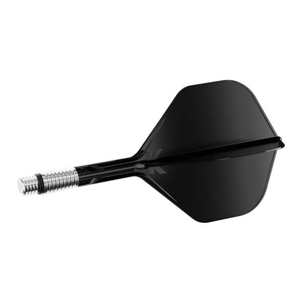 Basen på skaftet er fremstillet i let aluminium med radiale riller for bedre greb ved montering og afmontering. En gummiring og 2BA-gevind sikrer en fast og stabil forbindelse til dartpilen, samtidig med at systemet kan bevæge sig kontrolleret ved behov.