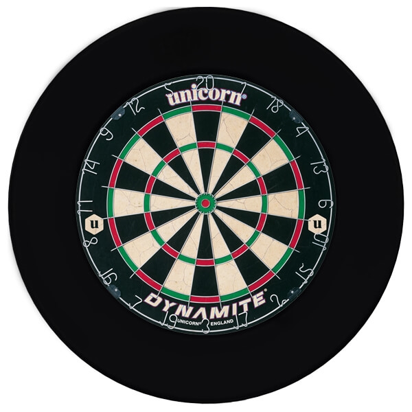 Et solidt startpakke med Dynamite dartskive og klassisk sort beskyttelsesring.
